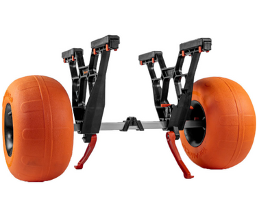 Included are two air-filled balloon tires mounted on an injection molded two-piece wheel. The air-filled tires are optimized for various soft surfaces including sand and mud, and yes, they are YakAttack Orange. The wheels feature sealed hubs to keep out sand and grit. Like the BeadLoc wheels, they easily snap in place and are removed by a push of a button, and are interchangeable.